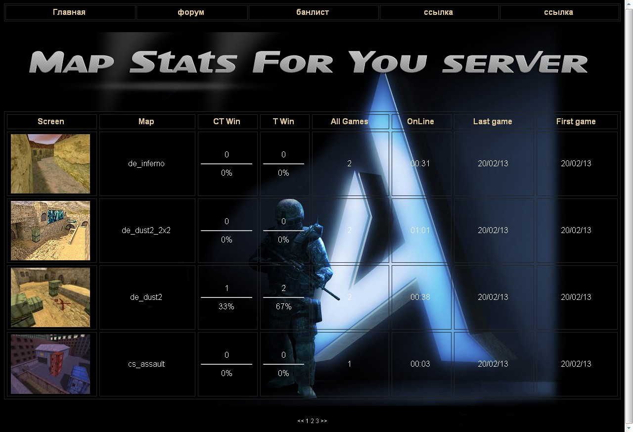 Counter-Strike 1.6 php Maps İstatistik yazılımı Server`inizin oynadığı Haritaları SQL`e kayıt eder ve hangi haritada daha fazla oyuncu var hangi harita daha çok açılıyor bunun verilerini web sitenize yansıtabilirsiniz.